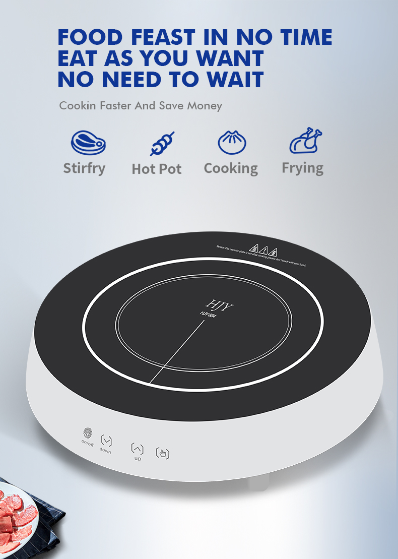 シンプルなデザインと使いやすさ、丸い形の電磁調理器で、キッチンのスペースを節約できます。 小さな側面とスリムな形状、 ポータブルで素晴らしい電磁調理器、EMC品質基準とCE / CE証明書